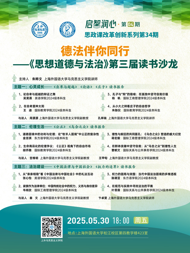 思政课改革创新系列·第34期|启智润心:德法伴你同行——《思想道德与法治》第三届读书沙龙