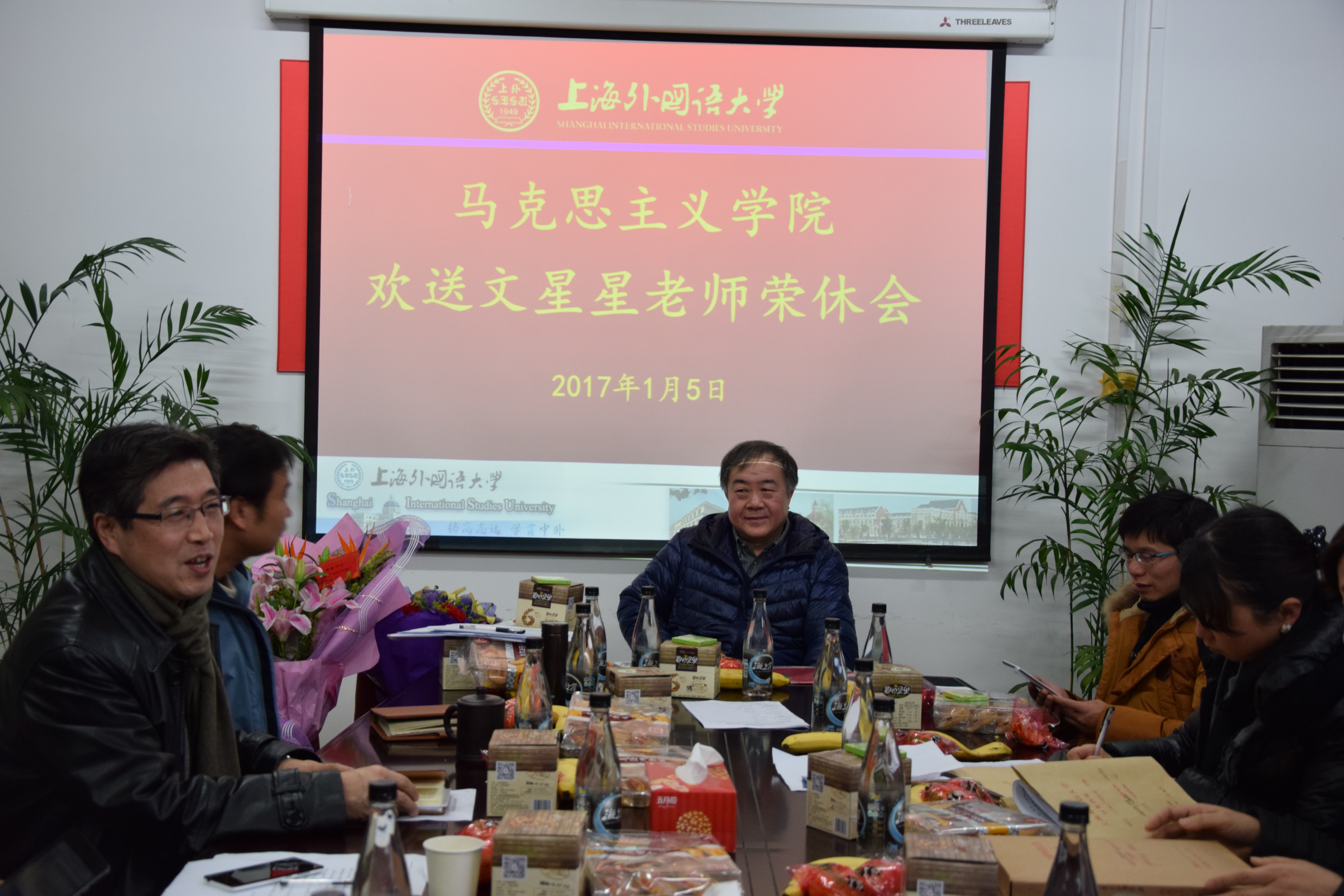最后,文星星老师发表荣休感言时说到,在上外30年的生活、工作、发展和取得的点滴成就,都有赖于学校及学院为自己提供了一个大环境、大平台,感谢马院,感谢所有曾经帮助、支持和关心自己的人。并和大家分享自己从教30年的感受与体会,应把工作变成一种兴趣,做好目标定位。执着、努力地学习,尤其是向别人学习,持之以恒,天道酬勤。还要对自己负责、对学生负责,讲好每一节课,作好每一篇文章,对年轻教师寄予深切的希望与美好的祝福。