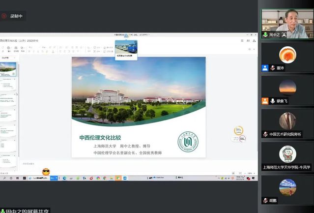 2022年5月10日晚,上海外国语大学马克思主义学院“名家讲坛”第十六期在线上顺利开讲,中国伦理学会名誉副会长、全国优秀教师、上海师范大学马克思主义学院周中之教授应邀作“中西伦理文化比较”专题讲座。本次讲座以腾讯会议为平台,讲座由上海外国语大学马克思主义学院副院长蒙象飞教授主持。上海外国语大学马克思主义学院的教师和研究生以及全市其他高校师生300多人出席了讲座。