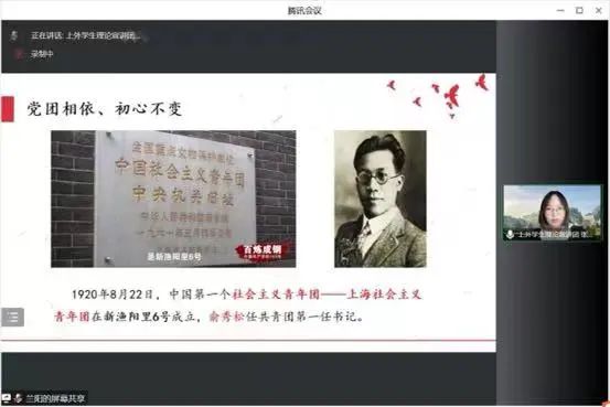 2022年10月11日,马克思主义学院2021级研究生、上外学生理论宣讲团成员陈燕娇和王宁参加由中共一大纪念馆主办的“喜迎二十大,初心向未来:‘新青年’党史知识邀请赛”。通过此次竞赛活动,同学们以赛促学,营造出了“新青年、学党史、悟思想、开新局”浓厚氛围。