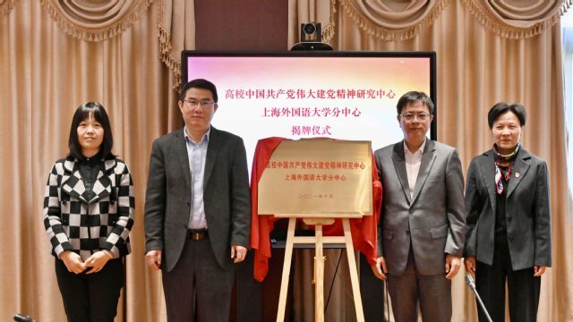 随后,闵辉、李岩松共同为“高校中国共产党伟大建党精神研究中心上海外国语大学分中心”揭牌,与会领导和专家共同见证揭牌仪式。