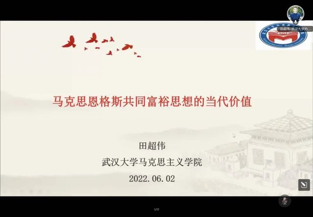 最后田超伟老师交流了他对马克思恩格斯共同富裕思想的当代价值的理解,首先,要准确把握共同富裕的历史方位。马克思主义揭示了共同富裕的历史性与阶段性,区分了社会主义阶段和共产主义高级阶段两个阶段的共同富裕实现状况问题。新时代谋划推进共同富裕必须从社会主义初级阶段的基本国情出发,综合考虑新发展阶段的发展环境与条件,明确战略目标与重点任务。其次,要科学认识共同富裕的基本内涵,即共同富裕是全体中国人民的共同富裕,是人的全面发展的共同富裕,共同富裕是分阶段渐进实现的过程。第三,要坚持和完善共同富裕的经济制度基础。坚持和完善公有制为主体,多种所有制经济共同发展的所有制制度,充分发挥国有经济与新型农村集体经济在推进共同富裕中的重要作用,平等保护各种所有制经济产权和合法利益,支持和引导资本规范健康发展,协同促进全体人民的共同富裕。坚持和完善社会主义市场经济体制以及坚持与完善按劳分配为主体,多种分配方式并存的分配制度。