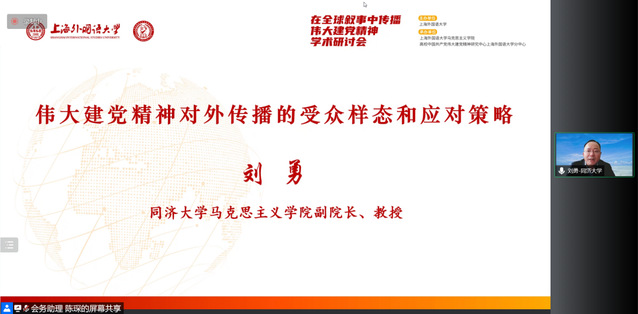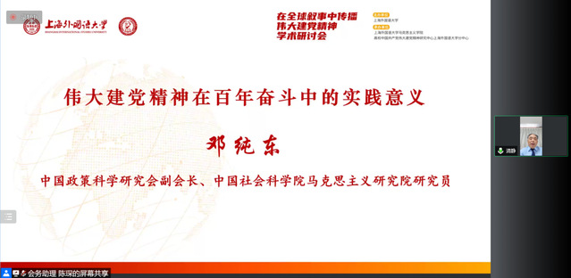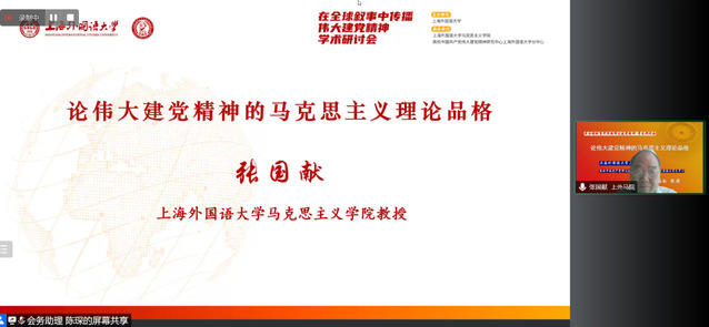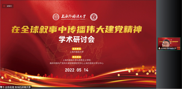 5月14日,“在全球叙事中传播伟大建党精神”学术研讨会在上海外国语大学召开。本次研讨会由上海外国语大学主办,上海外国语大学马克思主义学院、高校中国共产党伟大建党精神研究中心上海外国语大学分中心承办。会议开幕式由上海外国语大学党委常委、党委宣传部部长、马克思主义学院院长衣永刚主持。