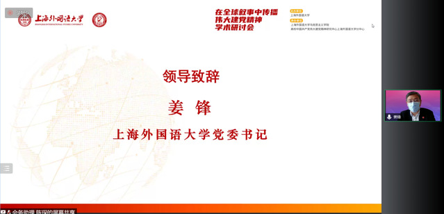 上海外国语大学党委书记姜锋为开幕式致辞。来自中国社会科学院、西南大学、重庆大学、云南大学、上海交通大学、华东师范大学、同济大学、华东政法大学、上海体育学院、上海对外经贸大学等高校和科研院所的专家学者及同学参与了线上会议研讨。