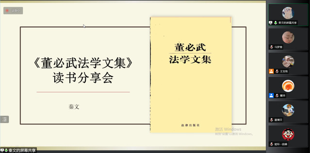 秦文老师概括了文集中董必武的核心观点。她提到,董老是第一个提出“党员犯法,加等治罪”的领导人;强调党员和党员领导干部必须严格遵守法治最多的党和国家领导人;是党内第一个,也是最多揭露、批评部分那些有特权意识党员和党员干部的领导人;是党内第一个、也是最多一个提出国家工作人员是守法的重点;同时还领导拟定、毛泽东参与审议的最早的刑事法规之一《湖北省惩治土豪劣坤暂行条例》。秦文老师通过列举相关具体的事例,由此总结道中国共产党的领导始终严格遵守法治,不包庇和宽宥任何人。