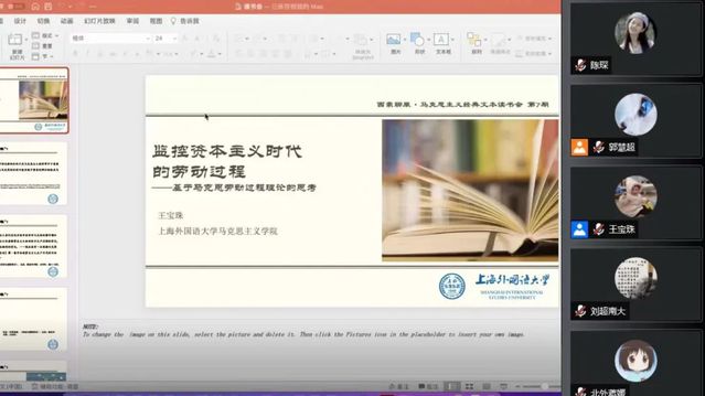 2022年3月29日晚,上海外国语大学马克思主义学院“西索聊原·马克思主义经典文本读书会”第七期顺利举办。此次读书会的主题为“监控资本主义时代的劳动过程——基于马克思劳动过程理论的思考”,主讲人为上海外国语大学马克思主义学院王宝珠副教授,读书会由上海外国语大学马克思主义学院郭慧超老师主持。