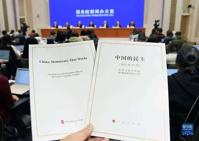 近日出版的《中国的民主》白皮书(图源:新华社),表明民主有多种形式