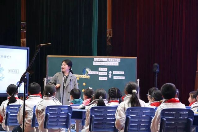 在课堂展示环节,分别由石东岳和张红两名思政专职教师执教了五年级上册第五单元第15课《地球——我们的家园》的第二课时《环境问题敲响了警钟》和九年级上册第三单元第六课《建设美丽中国-资源环境危机》。中小学两部全体道德与法治老师在思索剧场现场参与观摩,上外松外联盟内各所学校的思政教师通过网络参与了此次研讨活动。