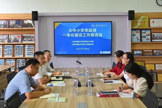 上外松外学校相关负责人前往上海外国语大学马克思主义学院进行首次联动,与大学马院就“上外松外思政一体化联盟三年工作计划”进行研讨。
