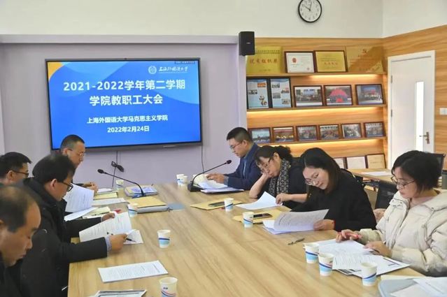 2022年2月24日,上海外国语大学马克思主义学院召开2021-2022学年第二学期第一次全体教职工大会,部署新学期重点工作。会议由上外马克思主义理论研究教学与宣传党总支书记孙宇伟主持,学院全体教职工参加会议。