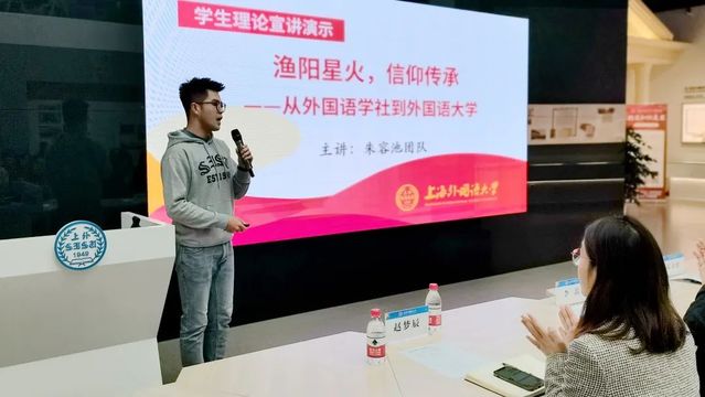 在主题为“渔阳星火,信仰传承:从外国语学社到外国语大学”的微宣讲中,朱容池同学从渔阳里的故事切入,讲述了外语人把马克思主义带到中国、在救亡图存和民族复兴的过程中始终与中华民族命运与共的历史自觉,以及新时代包括上外人在内的外语人传承伟大信仰、赓续红色血脉的使命担当。