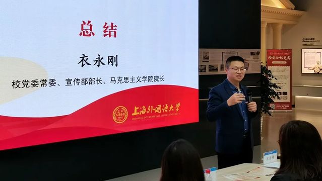 校党委常委、宣传部部长、马克思主义学院院长衣永刚分享了对学生理论宣讲的理解,寄语学生理论宣讲团成员,希望他们在未来进一步加强分众化表达,针对不同的受众讲出不同的精彩,提升理论宣讲工作的针对性和有效性;提升全球叙事自觉,发挥专业优势,拓宽国际视野,真正把中国故事讲好,帮助世界全面客观地认识中国;加强理论学习,夯实理论功底,提高理论思维能力,通过生动的故事阐述鲜活的理论,把有血有肉的故事讲得有筋有骨,讲出时代新人的精气神;努力把上外学生理论宣讲团打造成理论水平高、家国情怀深、授课技巧精的宣讲队伍,做好理论传播的新桥梁。