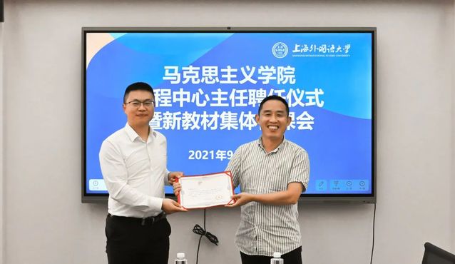 9月17日下午,上海外国语大学马克思主义学院在松江校区会议室举行课程中心主任聘任仪式暨新教材集体备课会。活动由上外马克思主义学院副院长门小军主持,学院全体教师参加了活动。