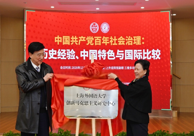 中国社会科学院大学首席教授程恩富、上海外国语大学校党委副书记王静为上海外国语大学马克思主义学院“创新马克思主义研究中心”揭牌。“创新马克思主义研究中心”以中国特色社会主义理论,特别是习近平新时代中国特色社会主义思想为指导,旨在从学理上阐释作为党和国家指导思想的马克思主义理论,发展和宣传作为学术思想的马克思主义理论,逐步建成在国内有学术影响力的科研创新团队,增强上海外国语大学马克思主义理论学科的综合实力。