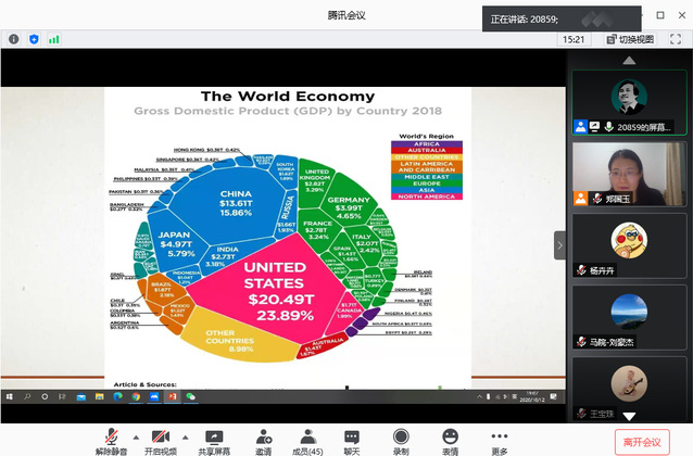 在最后的互动环节中,肖巍教授详细地回答了师生们的有关提问,讲座在热烈讨论的气氛中取得了圆满成功。肖巍教授的本次讲座,主题鲜明、论证有力,图文并茂,富有逻辑,说理透彻,说服力强,既展望了我国发展的光明未来,传递了信心与力量,又揭示了发展路途上的曲折困难,警示切勿盲目乐观。参与论坛的师生也纷纷留言表示,肖巍教授关于我国当前与未来发展问题的深刻解读,令聆听讲座的师生受益良多,引发更多的学术思考。