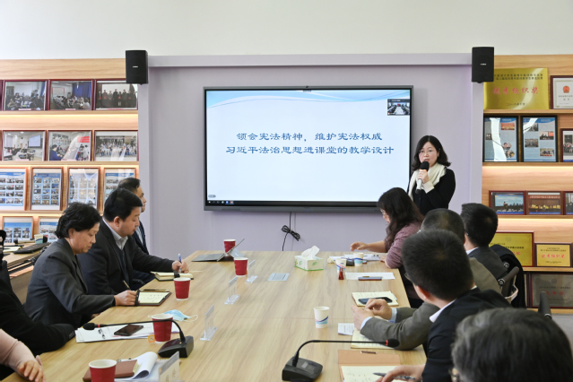 马克思主义学院副院长蒙象飞首先从总体上介绍了马克思主义学院在教学中将“习近平法治思想”融入各门思政课的情况,学院通过集体备课,厘清不同思政课的教学侧重点,解决授课内容交叉问题;通过集体备课,将政治话语更好地转化为教学话语和学术话语。