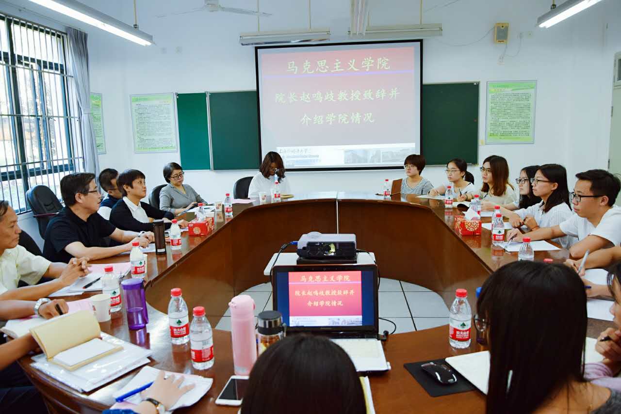 9月13日下午,马克思主义学院举行2017级思想政治教育专业硕士研究生欢迎会暨师生见面会。院长赵鸣歧教授、支部书记万继蓉老师、以及王祥兴教授、于新娟教授、班主任张放老师、辅导员刘豪杰老师出席,会议由王祥兴教授主持。