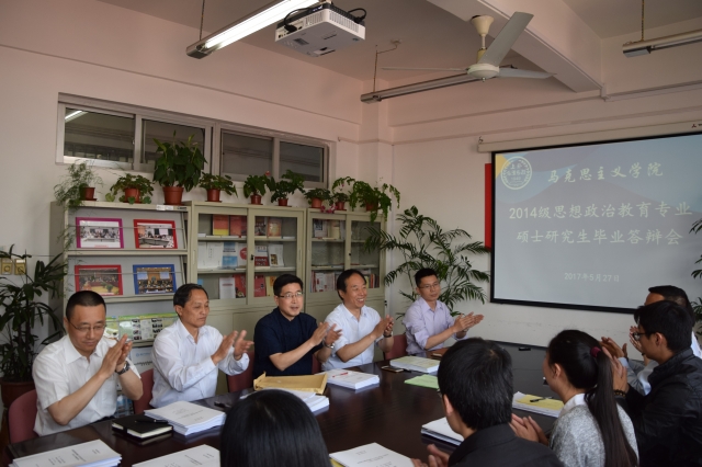 5月27日,2014级思想政治教育专业硕士研究生论文答辩以及2015级研究生论文开题在虹口校区马克思主义学院会议室顺利举行。院长赵鸣歧教授、副院长蒙象飞副教授、上海师范大学马克思主义学院石书臣教授组成答辩委员会,石书臣教授担任委员会主席。研究生导师王祥兴教授、于新娟教授、刘蓉蓉副教授、钟霞副教授、刘露萍副教授、孙宇伟副教授以及我院全体研究生参加了答辩及开题会。