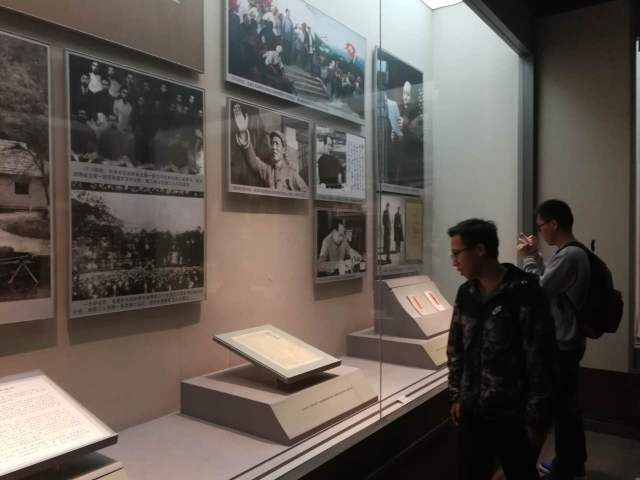 在南湖革命纪念馆内,同学沿着中国共产党90余载的光辉历程,共同回忆中国共产党从建立到发展的这一开天辟地的大事变。