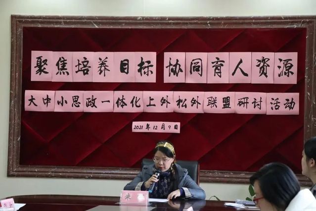 松江区教育局在东华大学附属实验学校开展松江区“大中小思政课一体化”工作推进会。方案要求在原有的大学附校模式的基础上,组建以大学附校为牵头单位的大中小学思政课联盟,形成以项目为枢纽的紧密型合作模式,形成集备课、听课、研讨等于一体的研究模式。