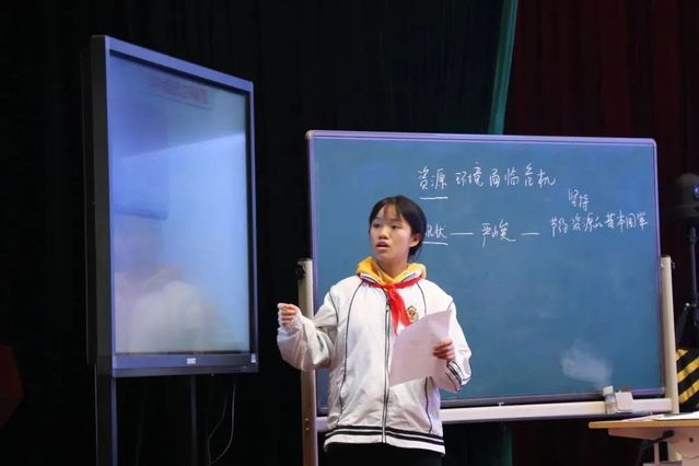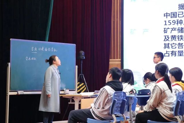 在课堂展示环节,分别由石东岳和张红两名思政专职教师执教了五年级上册第五单元第15课《地球——我们的家园》的第二课时《环境问题敲响了警钟》和九年级上册第三单元第六课《建设美丽中国-资源环境危机》。中小学两部全体道德与法治老师在思索剧场现场参与观摩,上外松外联盟内各所学校的思政教师通过网络参与了此次研讨活动。