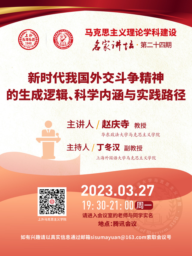 名家讲坛第二十四期:新时代我国外交斗争精神的生成逻辑、科学内涵与实现路径