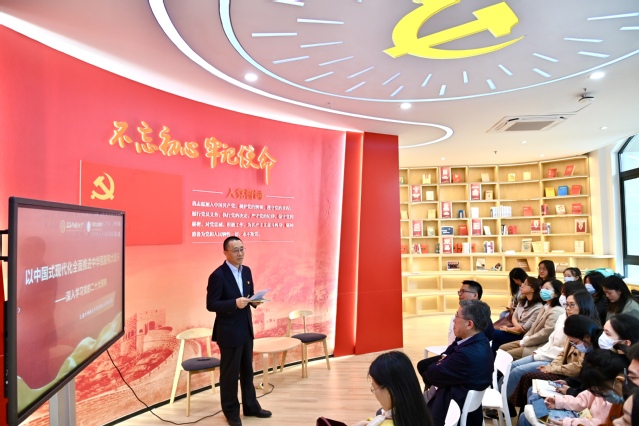 2023年4月26日上午,上海外国语大学马克思主义学院党委在松江校区党群服务中心开展学习党的二十大精神优秀示范党课。上海外国语大学马克思主义学院党委全体党员师生参加了此次组织生活,上外马克思主义学院党委书记孙宇伟主持党课。