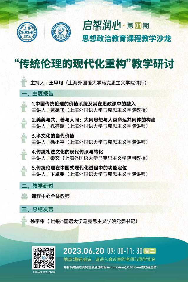 启智润心•思想政治教育课程教学沙龙第一期:“传统伦理的现代化重构”教学研讨