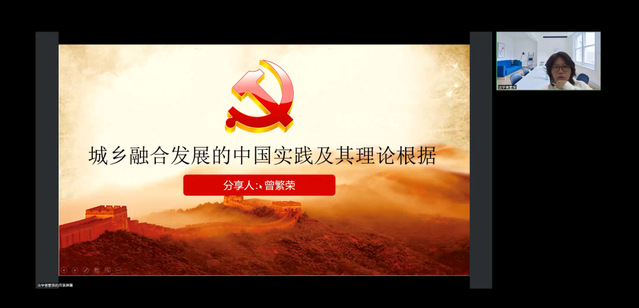 来自法学专业的曾繁荣同学以“城乡融合发展的中国实践及其理论根据”为主题作分享报告,从个人对于城乡发展的切身体会和学习感悟阐述选题缘由,通过对中国城乡发展制度变迁历程的梳理分析城乡发展的实践经验,并对马克思主义学说中关于城乡融合发展的重要思想以及中国化时代化的最新理论成果进行探究,得出习近平新时代城乡融合思想对推进中国特色社会主义城乡融合发展具有重大理论指导意义的结论。来自日语专业的刑訸程同学以“非物质文化遗产保护的价值意蕴与实现路径”为主题作分享报告,详细论述了当前我国非物质文化遗产保护工作的发展现状与面临问题、价值意蕴及其表现以及非物质文化遗产保护的实现路径。