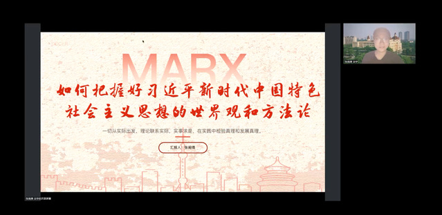来自法学专业的张阁倩同学以“如何把握好习近平新时代中国特色社会主义思想的世界观和方法论”为主题作分享报告,分别从对于习近平新时代中国特色社会主义思想世界观和方法论的科学内涵的全面理解、理论渊源的深刻认识、独特贡献的准确把握、实践旨趣的生动诠释四个方面进行阐述。