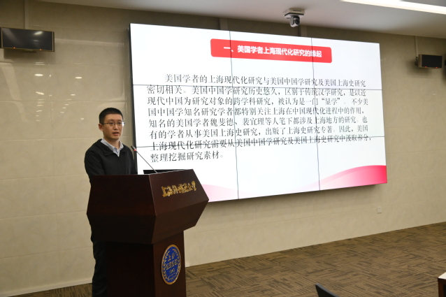 第五场分论坛“海外上海现代化研究”,由上海外国语大学马克思主义学院宫维明副教授主持。来自上海外国语大学郑国玉教授,上海工程技术大学刘晨老师,南京大学马克思主义学院王化禹同学分别做了发言。华东师范大学政治与国际关系学院刘军教授做了点评。