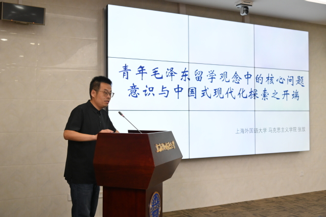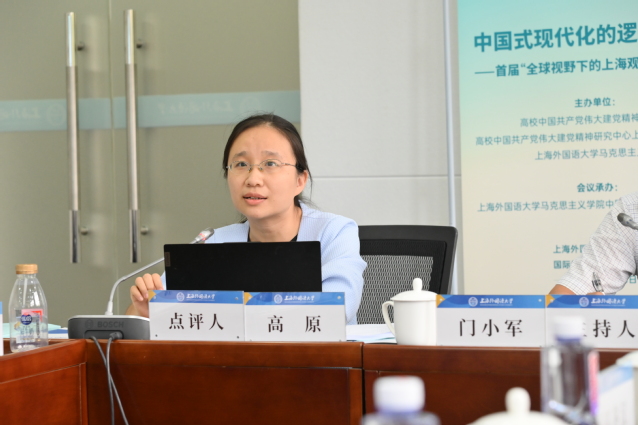 第一场分论坛“上海与中国式现代化道路”,由上海外国语大学马克思主义学院门小军副教授主持。来自华东师范大学的刘军教授、商丘师范学院的孙国栋副教授、上海外国语大学的张放副教授和上海社科院世界中国学研究所张桐同学分别做了发言。《探索与争鸣》的高原编辑做了点评。