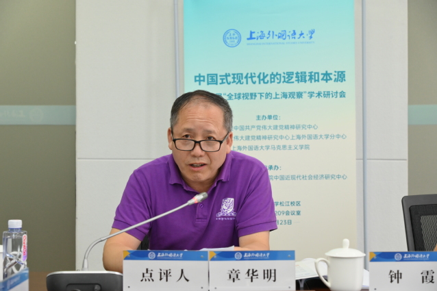 2023年9月,由高校中国共产党伟大建党精神研究中心、高校中国共产党伟大建党精神研究中心上海外国语大学分中心、上海外国语大学马克思主义学院主办,上海外国语大学马克思主义学院中国近现代社会经济研究中心承办的“中国式现代化的逻辑和本源——首届‘全球视野下的上海观察’学术研讨会”在上海外国语大学松江校区顺利召开。来自上海大学、上海社会科学院、华东师范大学、同济大学、东华大学、上海外国语大学、上海海洋大学、上海电机学院、上海工程技术大学、宁波大学、商丘师范学院、南京大学等高校师生和《探索与争鸣》编辑部的专家参与了研讨,就会议主题进行了深入交流。