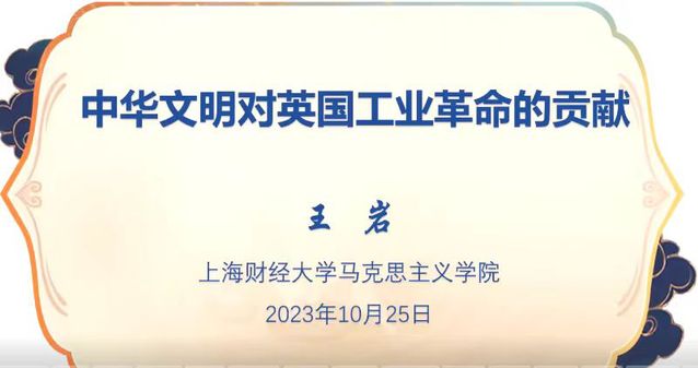 2023年10月25日晚,上海外国语大学马克思主义学院“青年学术沙龙”第三十期顺利举办。本次沙龙主题为“中国文明对英国工业化的影响”,主讲人为上海财经大学马克思主义学院助理研究员王岩老师,上海外国语大学马克思主义学院郭慧超老师主持讲座。