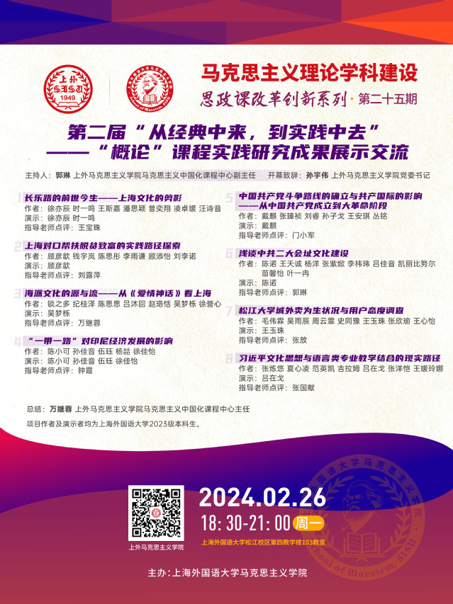 思政课改革创新系列第二十五期:第二届“从经典中来,到实践中去”—“概论”课程实践研究成果展示交流