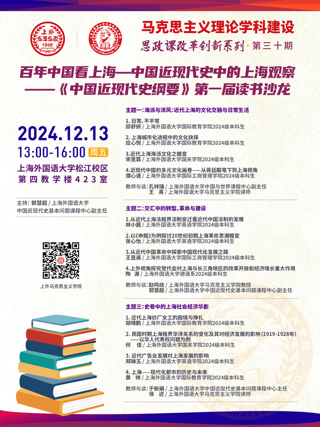 思政课改革创新系列第30期:百年中国看上海——中国近现代史中的上海观察——《中国近现代史纲要》第一届读书沙龙