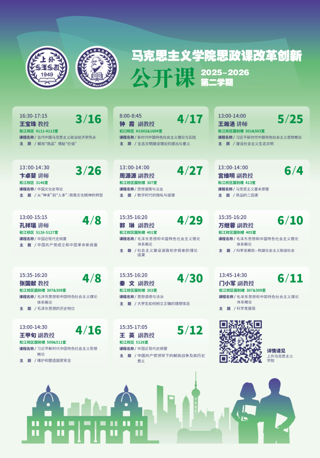 马克思主义学院思政课改革创新•公开课预告(2025-2026学年第二学期)